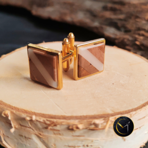 Boutons de manchettes inspirées du tressage des vanes*, en ivoire végétal (fruit du latanier), tamarin, ébène de Madagascar et acier inoxydable....