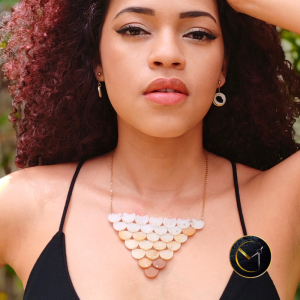 Collier en ivoire végétal, dégradé de toutes les teintes naturelles de graines de latanier. Tous les éléments de nos bijoux sont fabriqués...