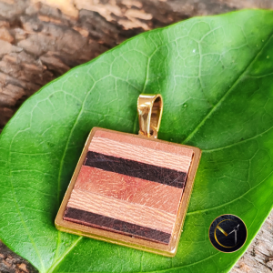 COLLECTION PATCHWORK Pendentif losange dans carré, composition graphique en bois, tamarin, jacquier, ébène de Madagascar, ivoire végétal et acier...