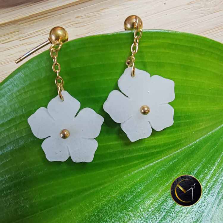 • Boucles d'oreilles, fleur, ivoire végétal et acier inoxydable.